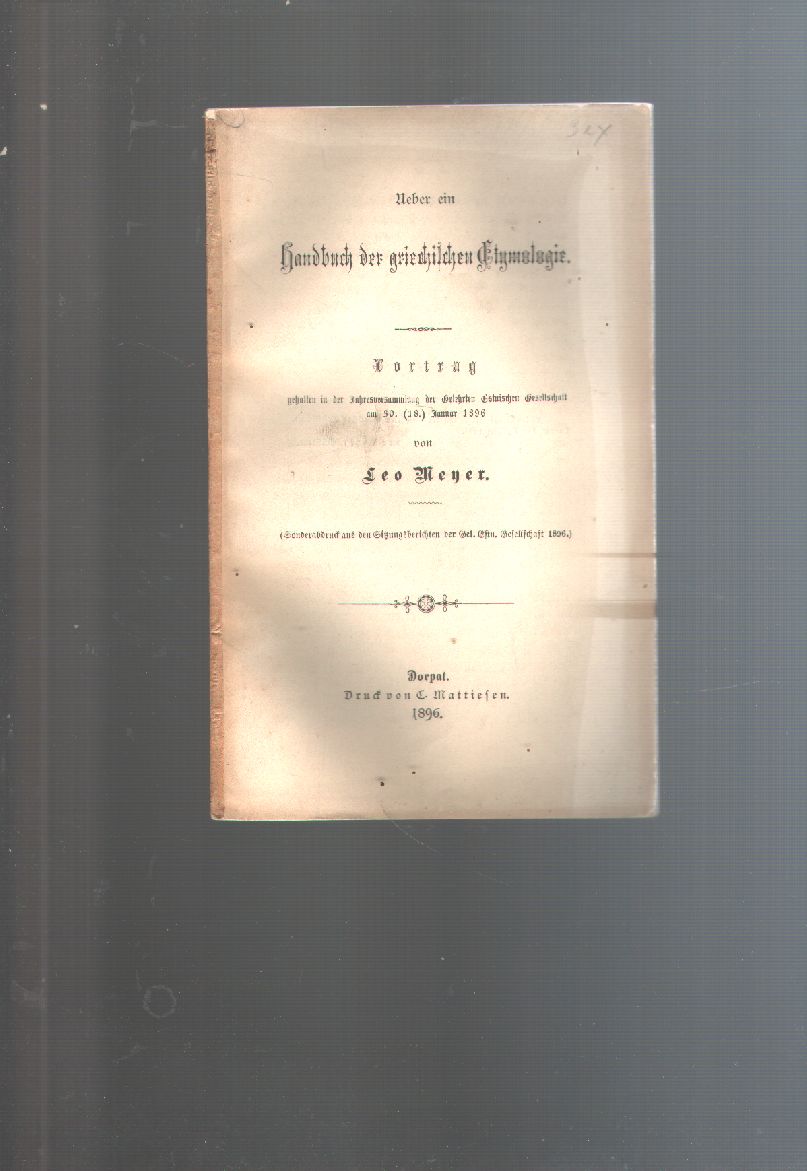 Ueber ein Handbuch der griechischen Etymologie Vortrag gehalten in der Jahresversammlung der Gelehrten Estnischen Gesellschaft am 30. (18.) Januar 1896 |