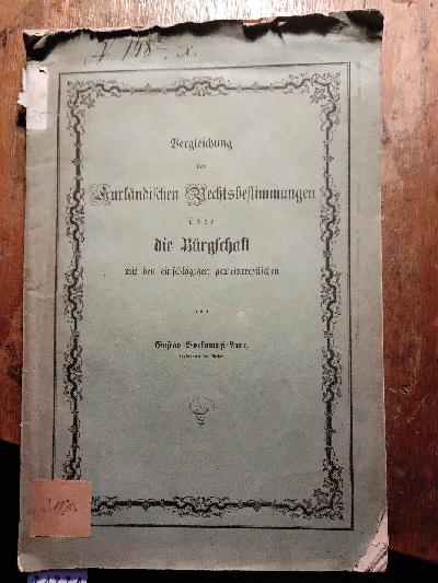 Vergleichung der kurländischen Rechtsbestimmungen über die Bürgschaft mit den einschlägigen gemeinrechtlichen. |