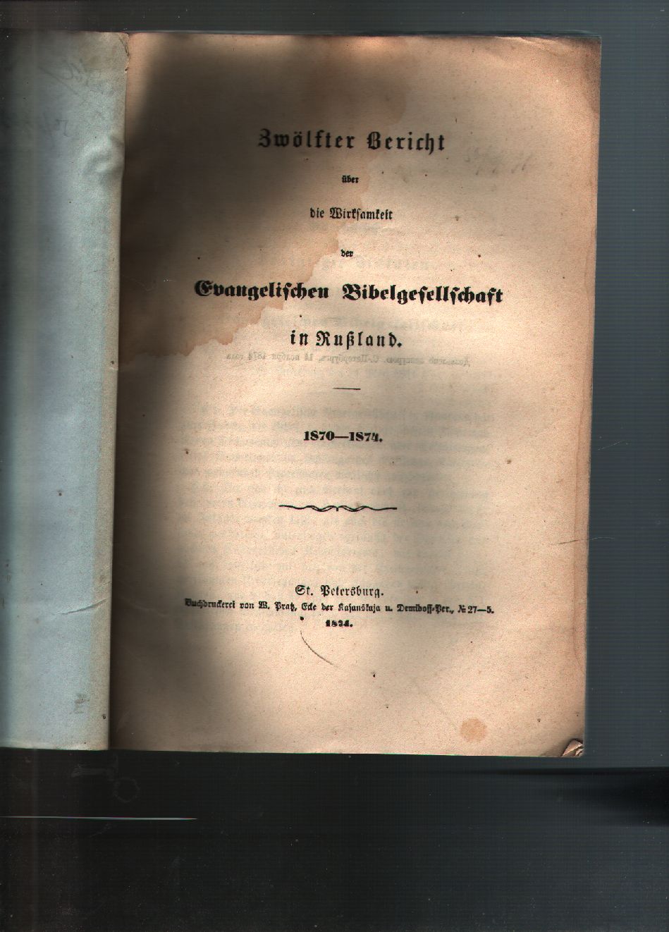 Zwölfter Bericht über die Wirksamkeit der Evangelischen Bibelgesellschaft in Russland 1870 - 1874 |