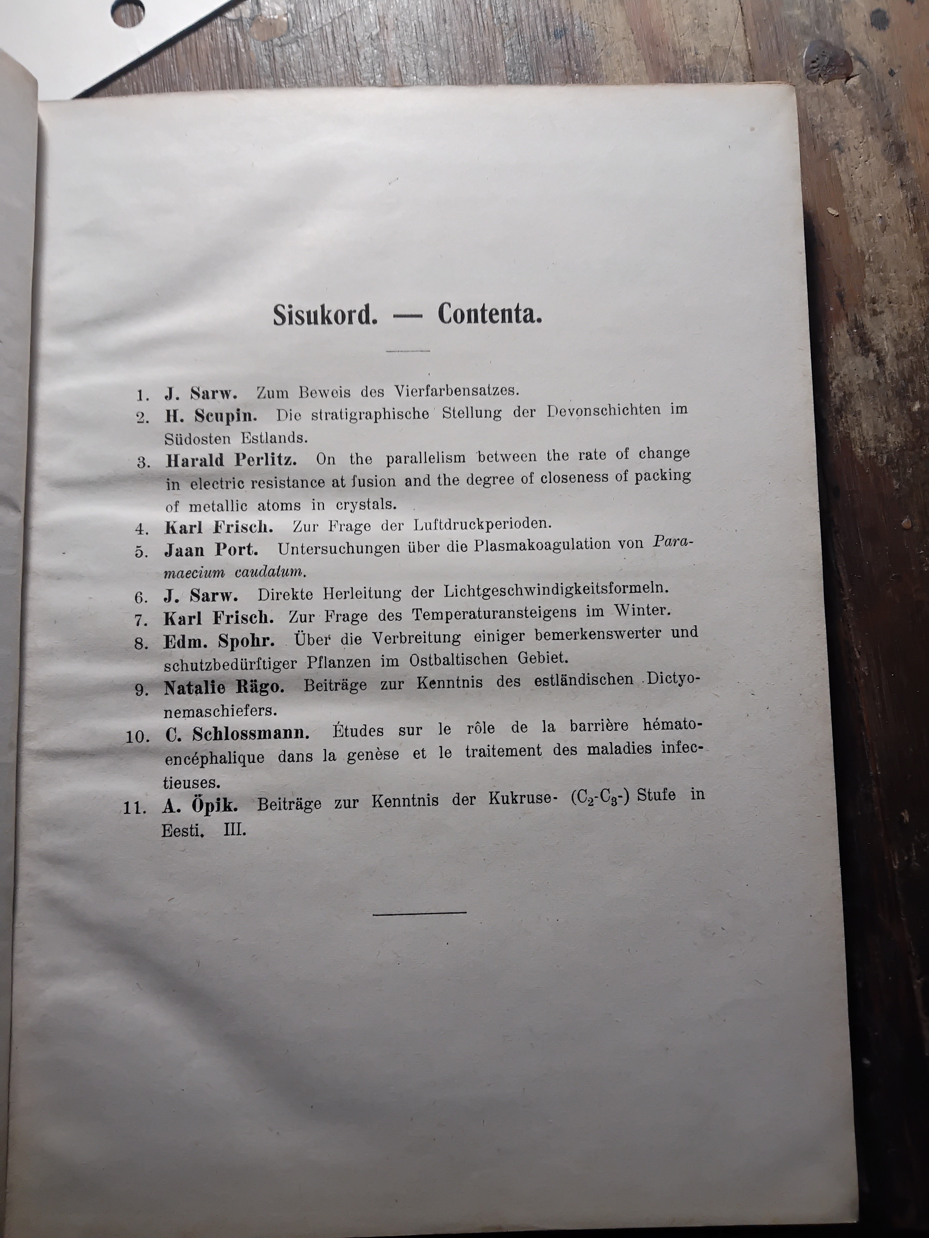 Öpik, Sarw3, Frisch, Port, Schlossmann, Spohr, Rägo