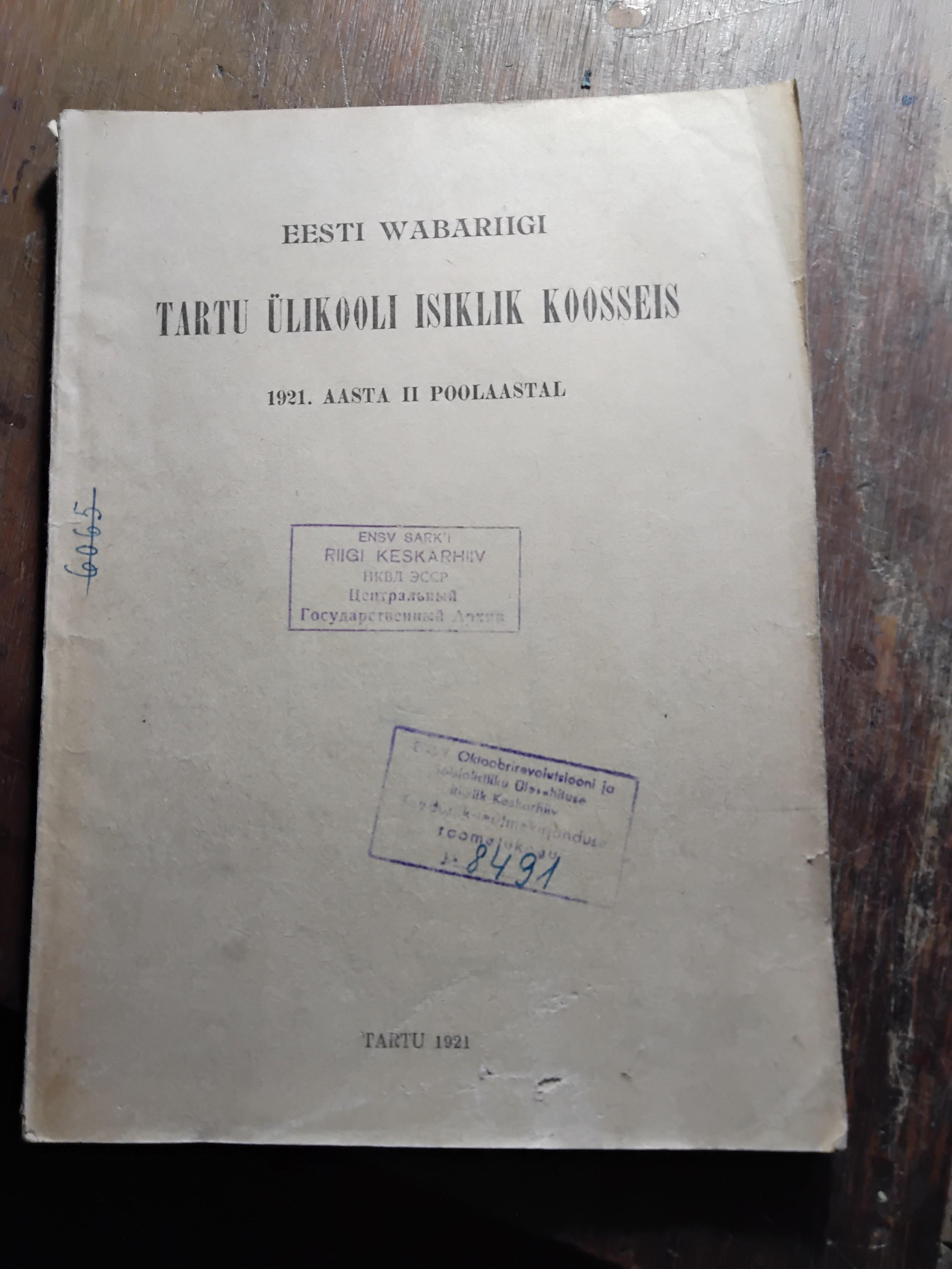 Eesti Wabariigi Tartu Ülikooli Isiklik Koosseis 1921. Aasta II Poolaastal (Persönliche Zusammensetzung der Universität Tartu der Republik Estland im zweiten Semester des Jahres 1921)