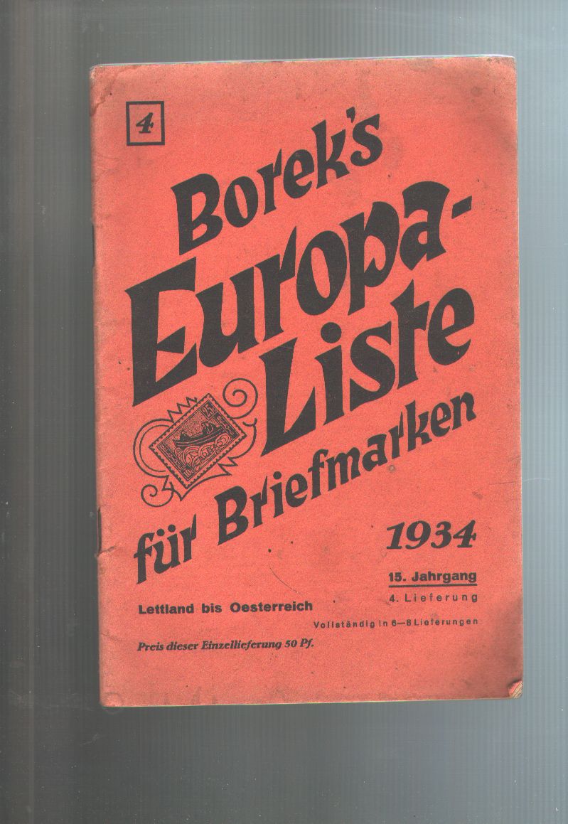 Boreks Europa Liste für Briefmarken Lettland bis Österreich 1934