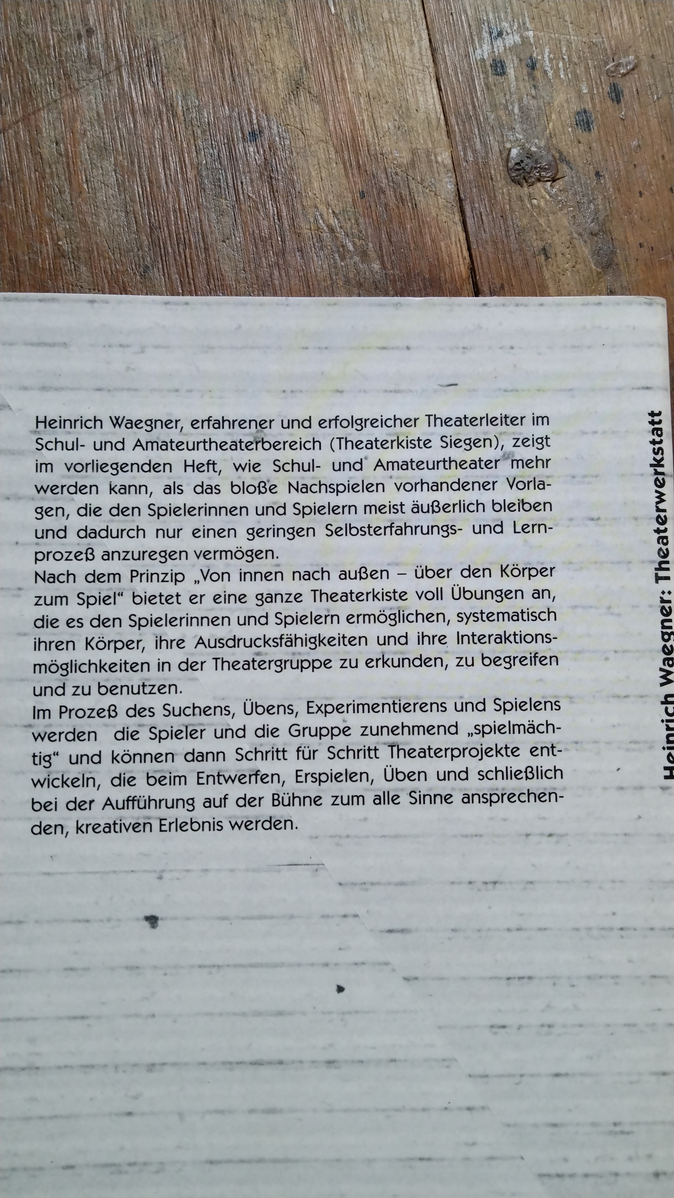 Theaterwerkstatt. Von innen nach aussen - über den Körper zum Spiel. Kommentierte Wege vom Warm-up bis zur Spielvorlage