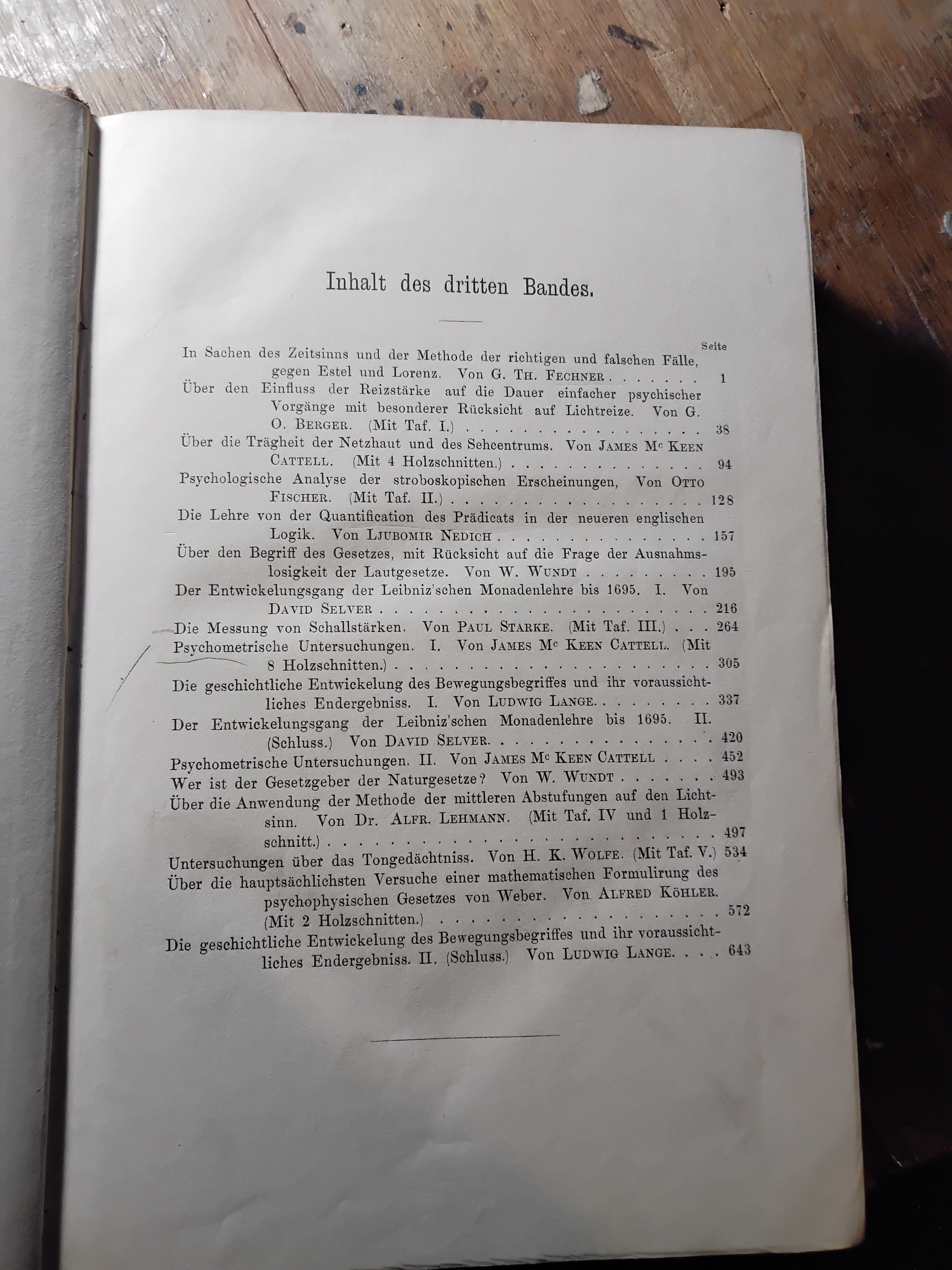 Wilhelm Wundt, Fechner, Berger, Cattell, Fischer, Nedlich, Selver, Starke, Lange, Lehmann, Wolfe, Köhler