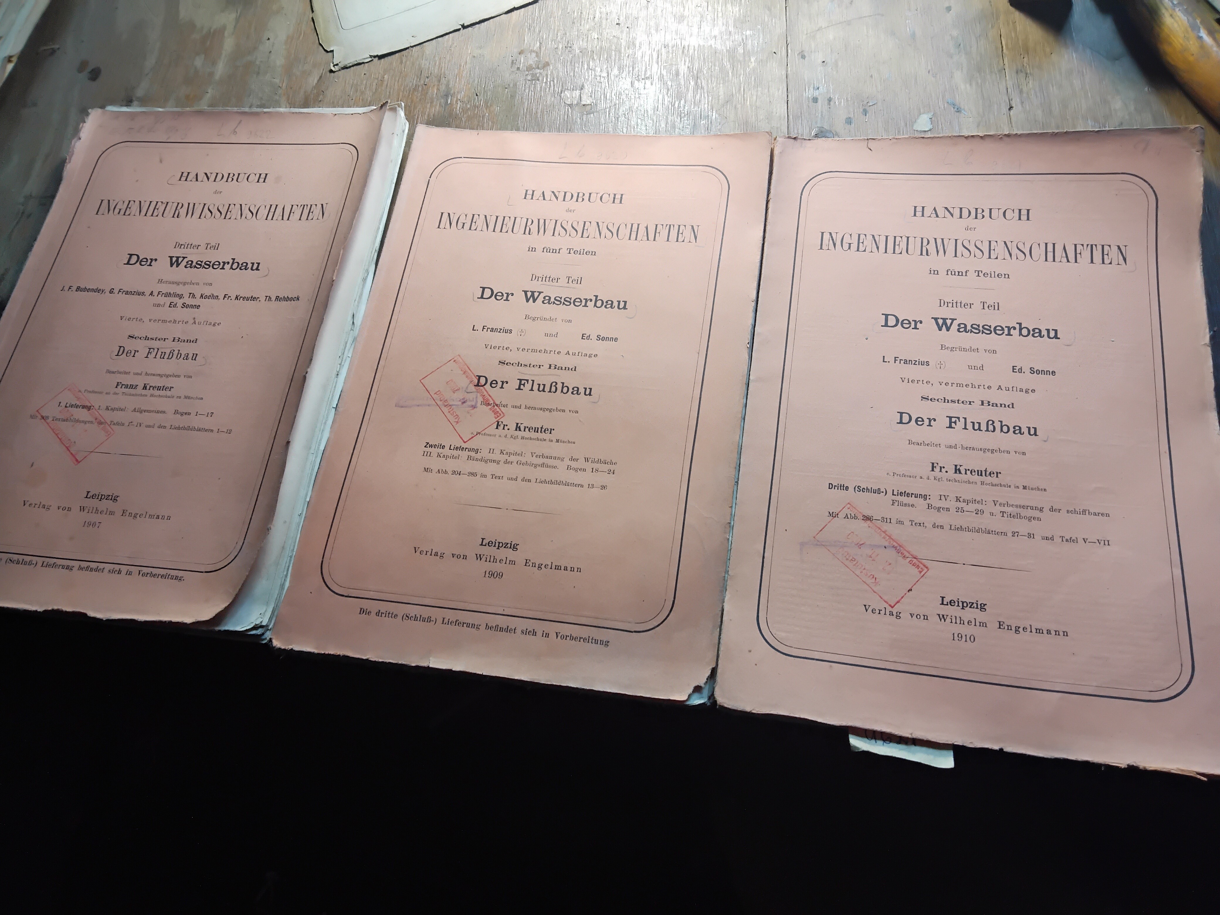 Bücher über Wasserbau, Drainagen, Wasserkraftwerke, Flussregulierung und Ähnliches.